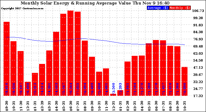 20171109 Monthly Solar Energy Production Value Running Average