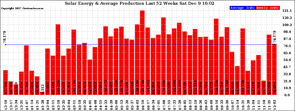 20171209 Weekly Solar Energy Production Last 52 Weeks