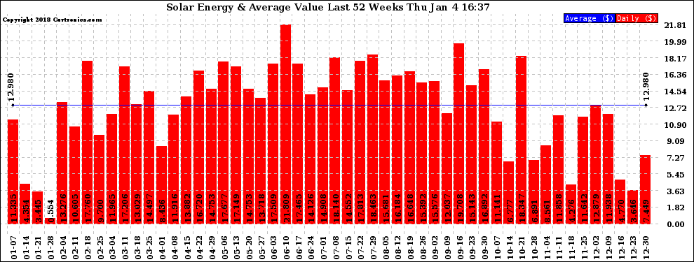 20180104 Weekly Solar Energy Production Value Last 52 Weeks