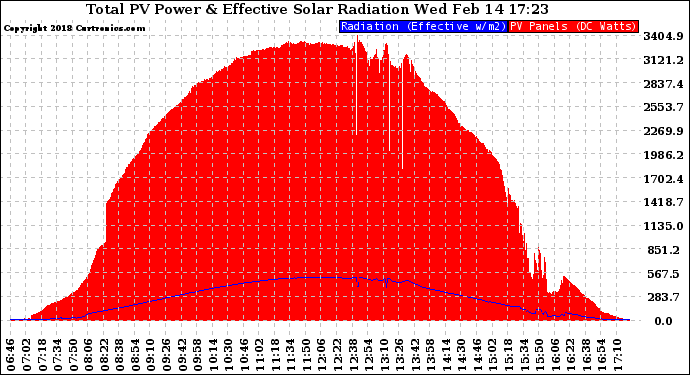 20180214 Total PV Panel Power Output & Effective Solar Radiation