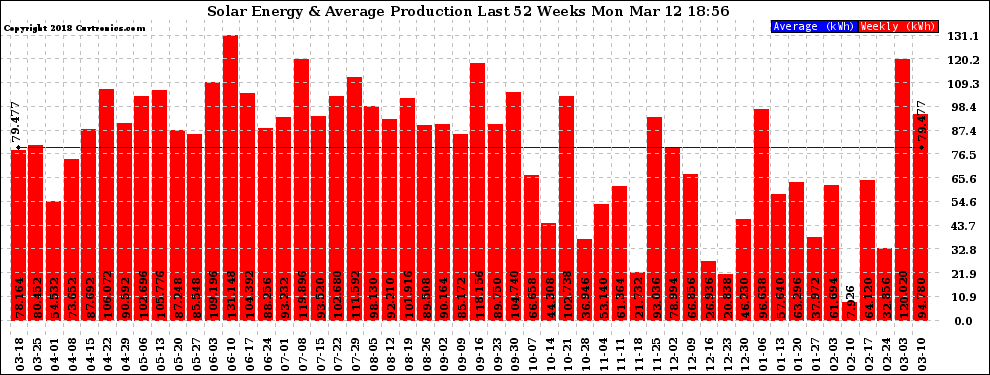 20180312 Weekly Solar Energy Production Last 52 Weeks