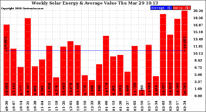 20180329 Weekly Solar Energy Production Value
