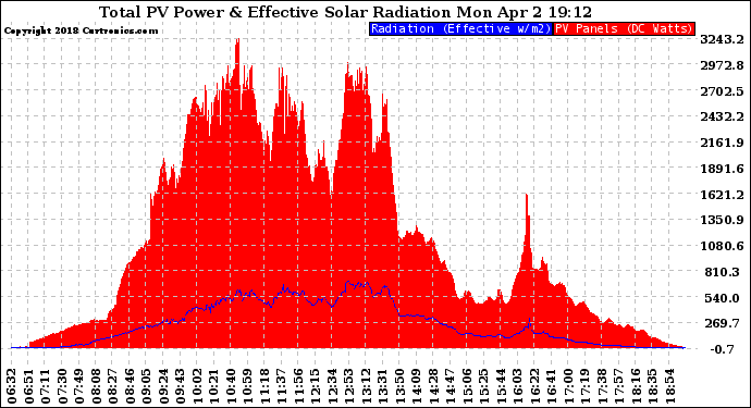 20180402 Total PV Panel Power Output & Effective Solar Radiation