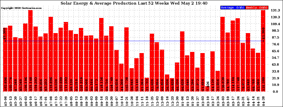 20180502 Weekly Solar Energy Production Last 52 Weeks