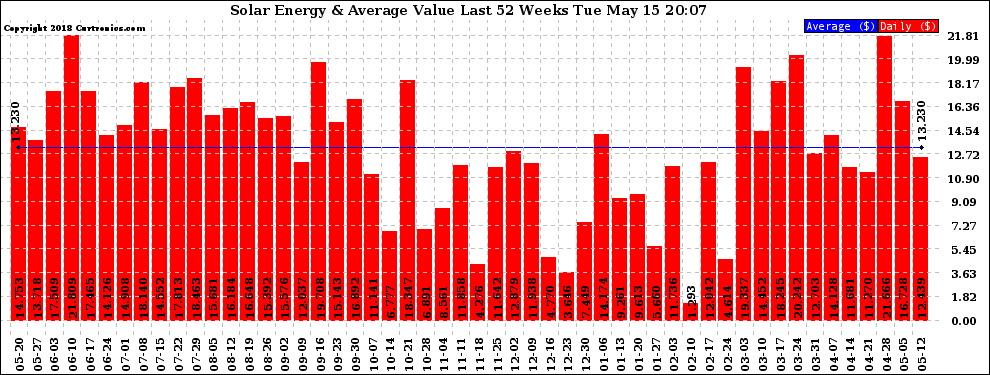 20180515 Weekly Solar Energy Production Value Last 52 Weeks