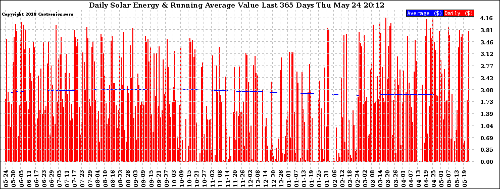 20180524 Daily Solar Energy Production Value Running Average Last 365 Days