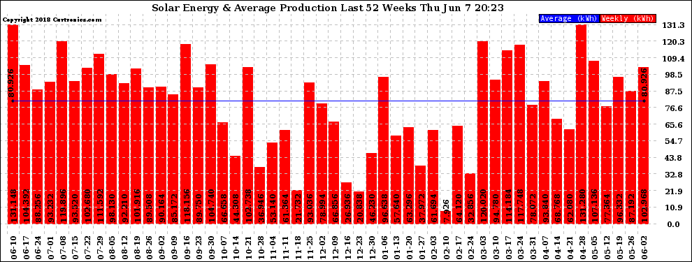 20180607 Weekly Solar Energy Production Last 52 Weeks