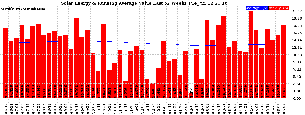 20180612 Weekly Solar Energy Production Value Running Average Last 52 Weeks