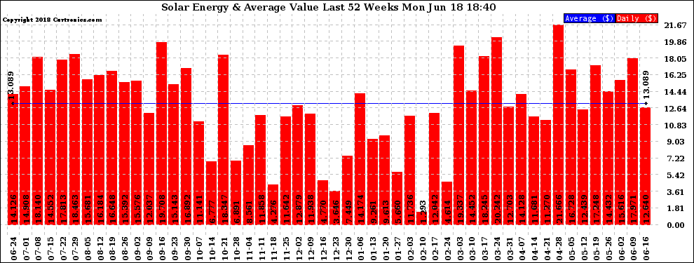 20180618 Weekly Solar Energy Production Value Last 52 Weeks
