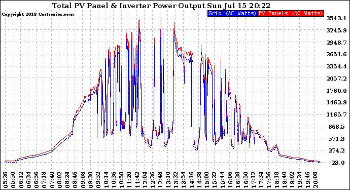 20180715 PV Panel Power Output & Inverter Power Output