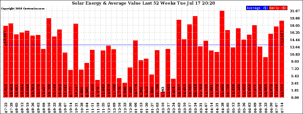 20180717 Weekly Solar Energy Production Value Last 52 Weeks