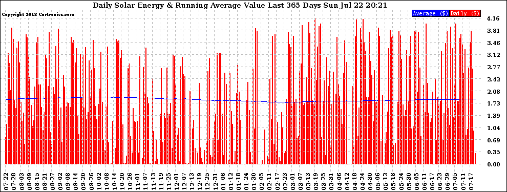 20180722 Daily Solar Energy Production Value Running Average Last 365 Days