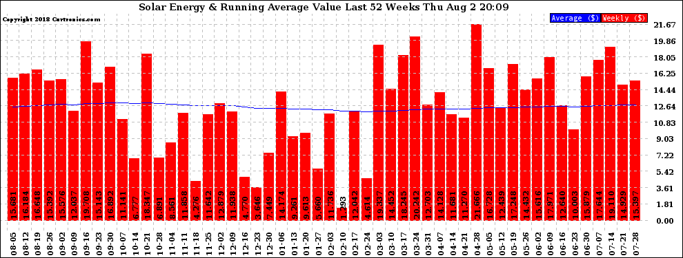 20180802 Weekly Solar Energy Production Value Running Average Last 52 Weeks