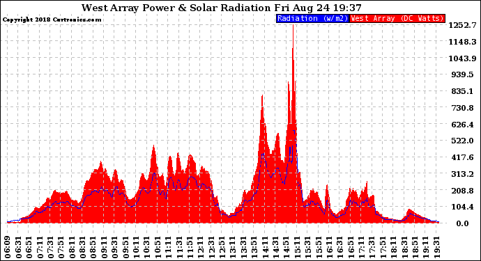 20180824 West Array Power Output & Solar Radiation