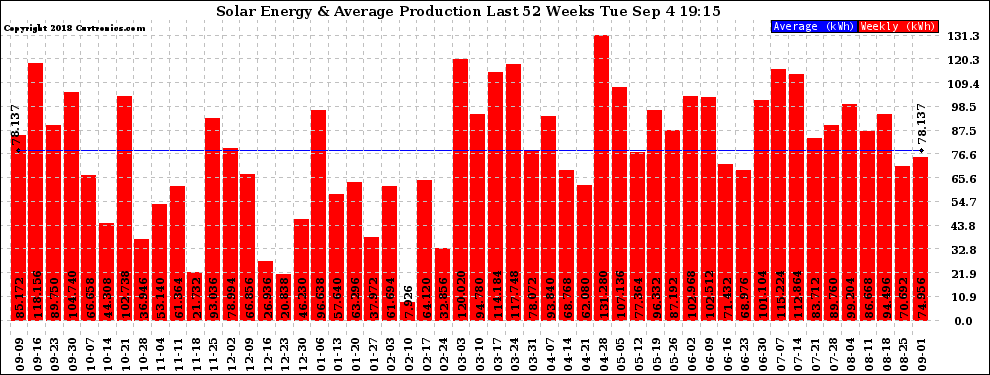 20180904 Weekly Solar Energy Production Last 52 Weeks