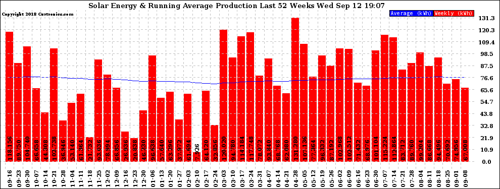 20180912 Weekly Solar Energy Production Running Average Last 52 Weeks