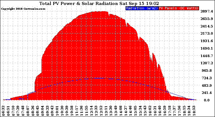 20180915 Total PV Panel Power Output & Solar Radiation