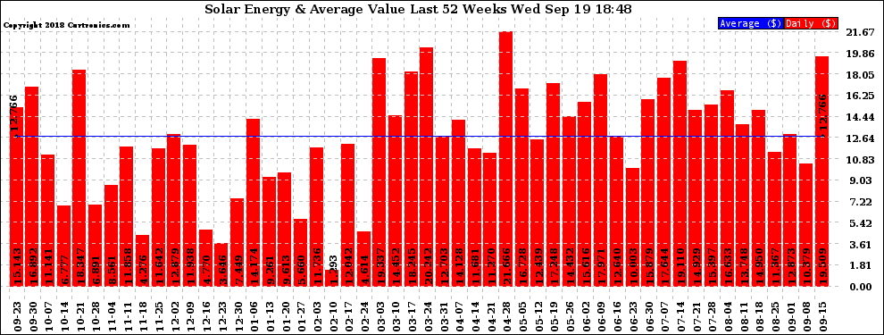20180919 Weekly Solar Energy Production Value Last 52 Weeks