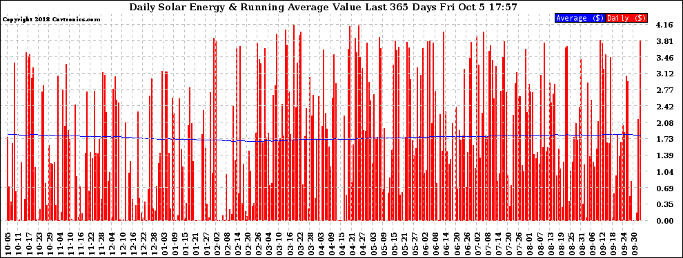 20181005 Daily Solar Energy Production Value Running Average Last 365 Days