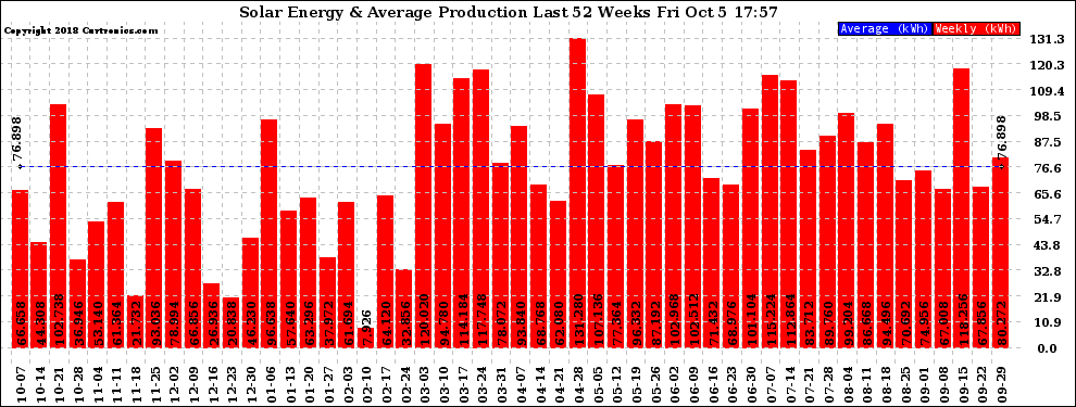 20181005 Weekly Solar Energy Production Last 52 Weeks