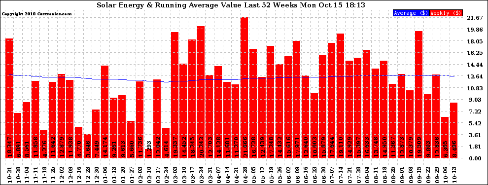 20181015 Weekly Solar Energy Production Value Running Average Last 52 Weeks