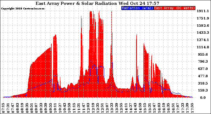 20181024 East Array Power Output & Solar Radiation