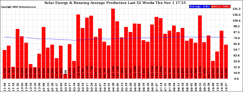 20181101 Weekly Solar Energy Production Running Average Last 52 Weeks