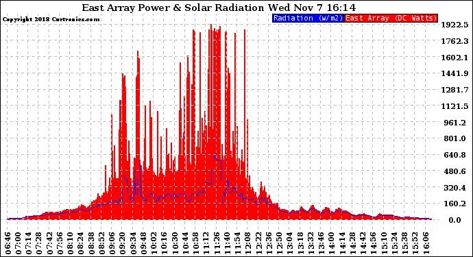 20181107 East Array Power Output & Solar Radiation