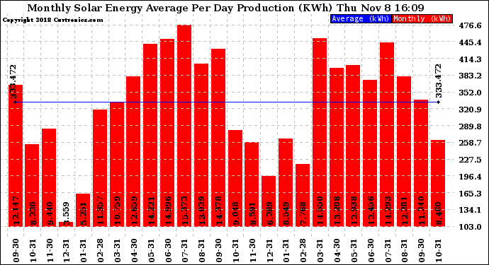 20181108 Monthly Solar Energy Production Average Per Day (KWh)