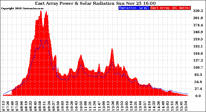 20181125 East Array Power Output & Solar Radiation