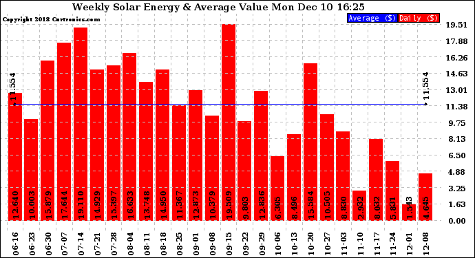 20181210 Weekly Solar Energy Production Value