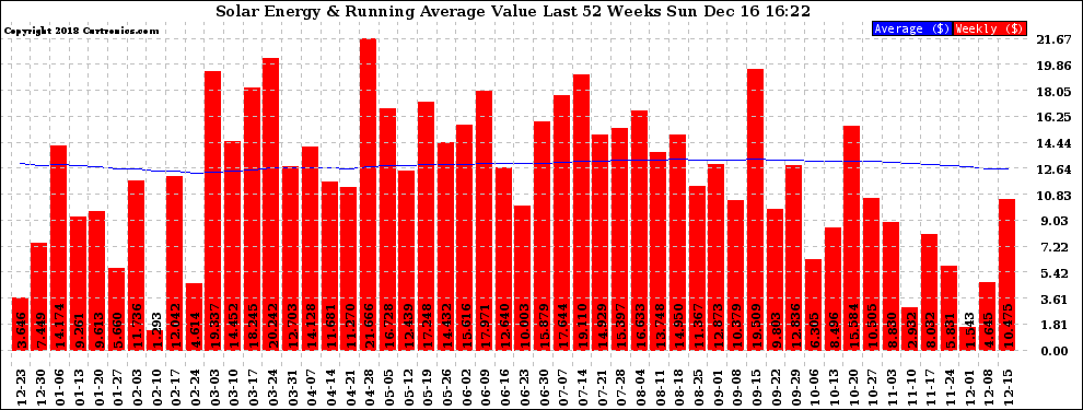 20181216 Weekly Solar Energy Production Value Running Average Last 52 Weeks