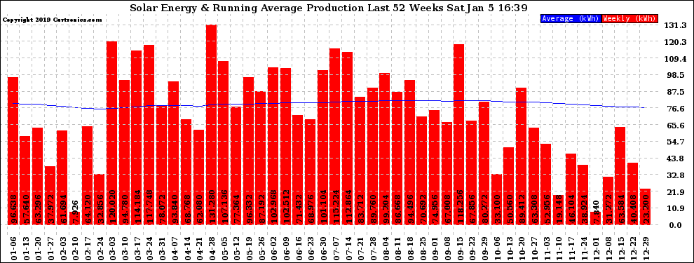 20190105 Weekly Solar Energy Production Running Average Last 52 Weeks