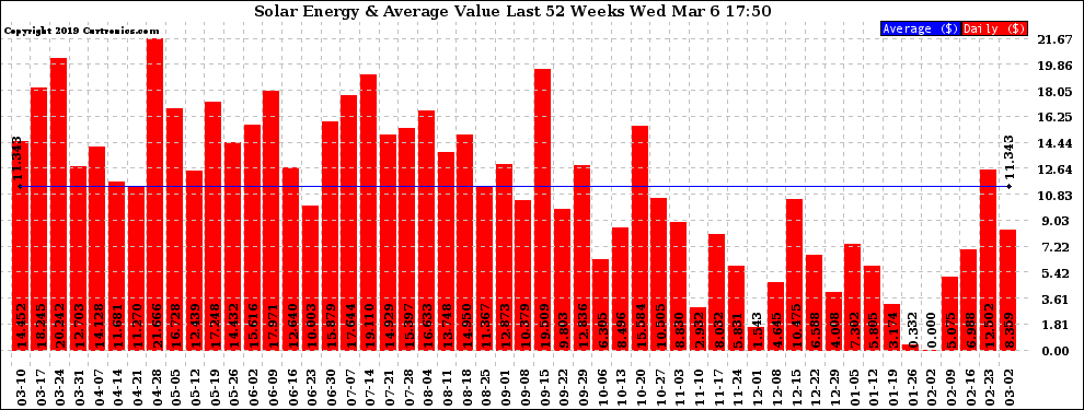 20190306 Weekly Solar Energy Production Value Last 52 Weeks