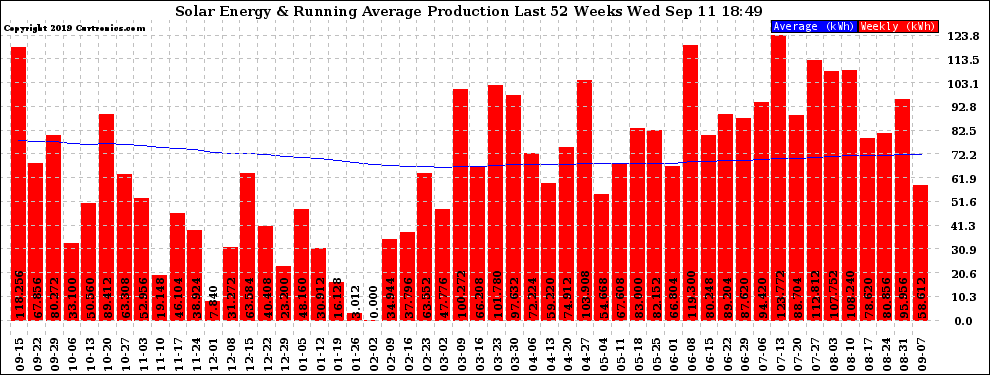 20190911 Weekly Solar Energy Production Running Average Last 52 Weeks