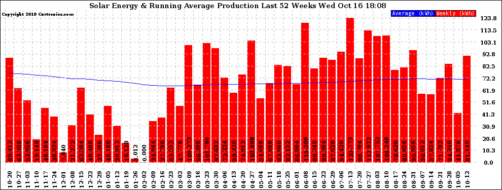 20191016 Weekly Solar Energy Production Running Average Last 52 Weeks