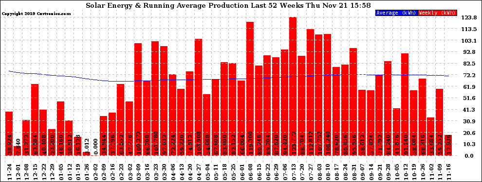 20191121 Weekly Solar Energy Production Running Average Last 52 Weeks