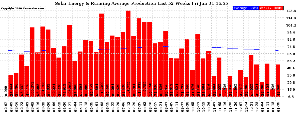 20200131 Weekly Solar Energy Production Running Average Last 52 Weeks