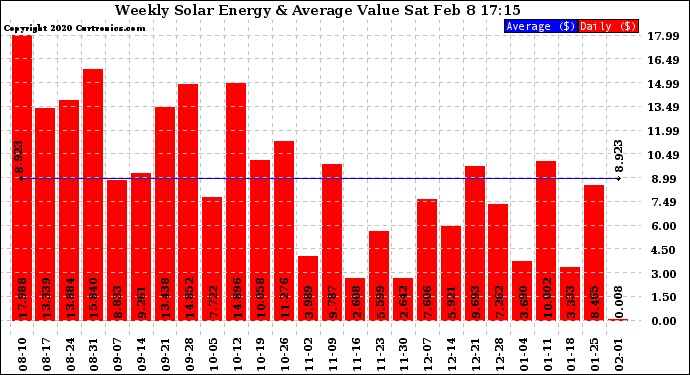 20200208 Weekly Solar Energy Production Value