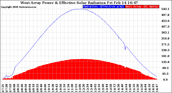 20200214 West Array Power Output & Effective Solar Radiation