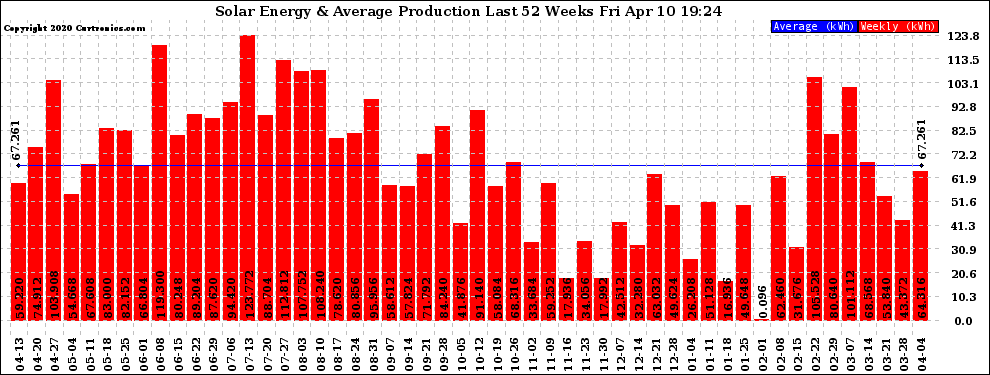 20200410 Weekly Solar Energy Production Last 52 Weeks
