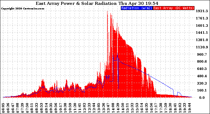 20200430 East Array Power Output & Solar Radiation