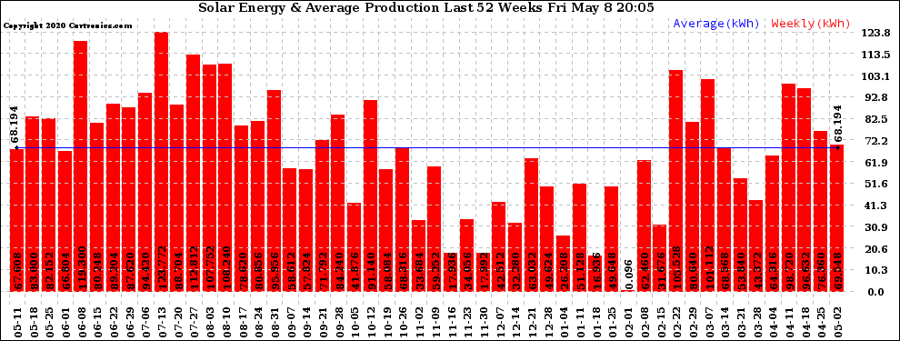 20200508 Weekly Solar Energy Production Last 52 Weeks