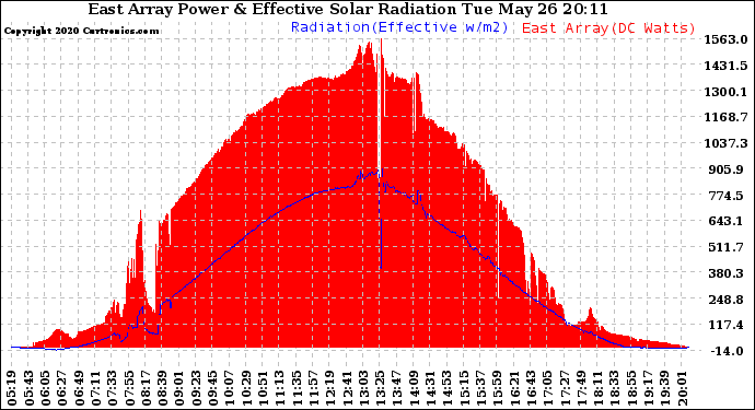 20200526 East Array Power Output & Effective Solar Radiation