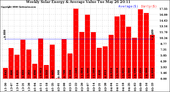 20200526 Weekly Solar Energy Production Value