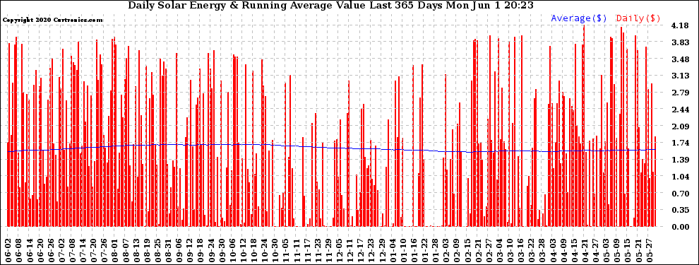 20200601 Daily Solar Energy Production Value Running Average Last 365 Days
