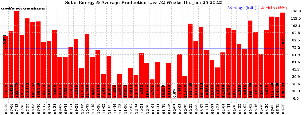 20200625 Weekly Solar Energy Production Last 52 Weeks