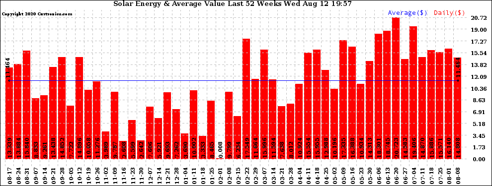 20200812 Weekly Solar Energy Production Value Last 52 Weeks