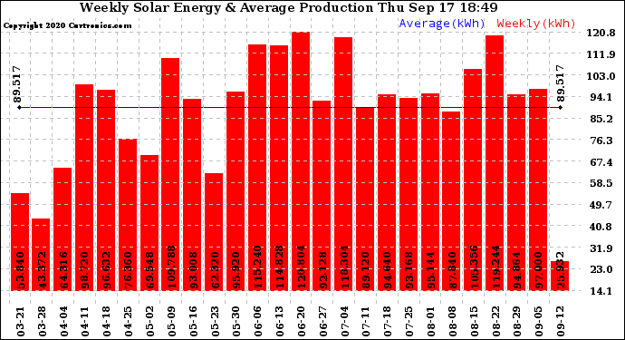 20200917 Weekly Solar Energy Production