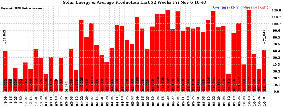 20201106 Weekly Solar Energy Production Last 52 Weeks
